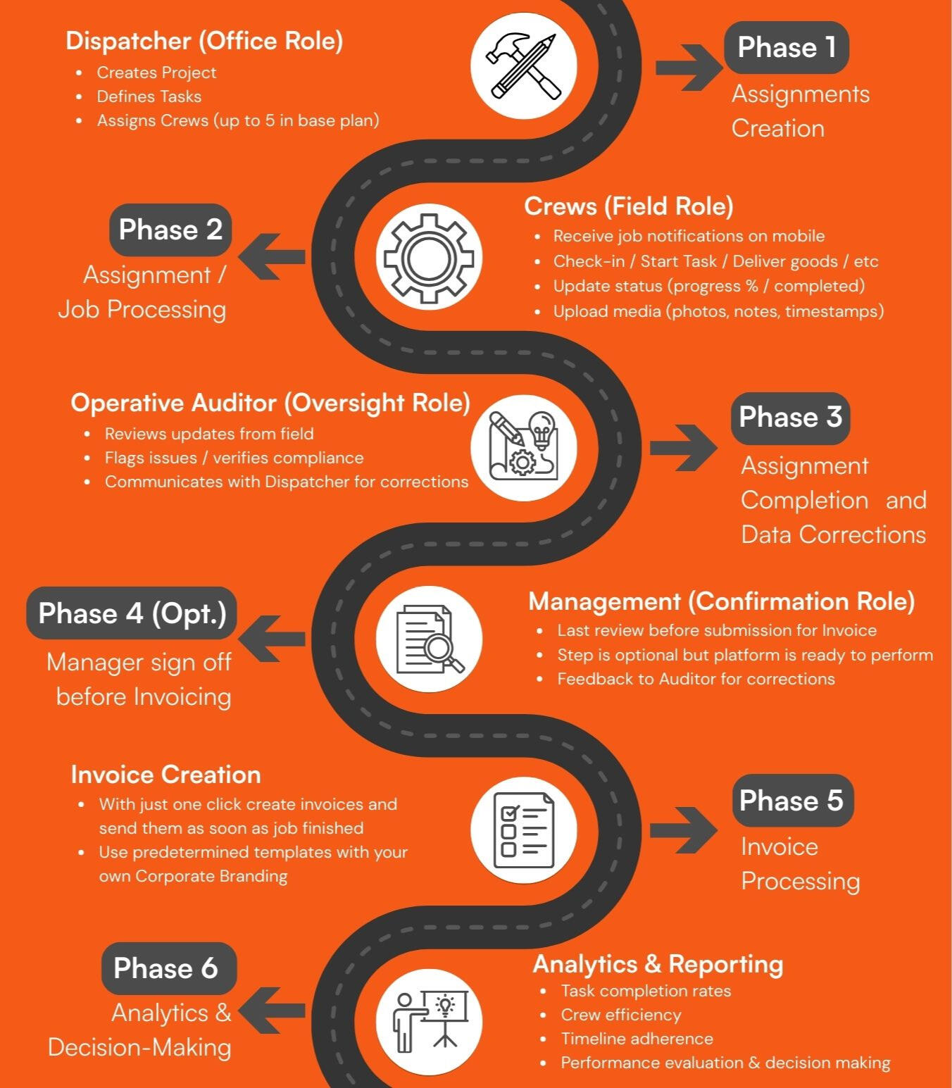 A solution to help you assign tasks with specifications to the detail, monitor results, and eliminate the headaches of manual coordination and phone calls with misunderstandings.
