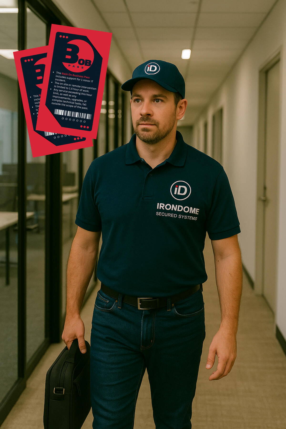 The BOB Pass includes rapid-response support for minor IT incidents. Each on-site or remote intervention is limited to one hour per visit.